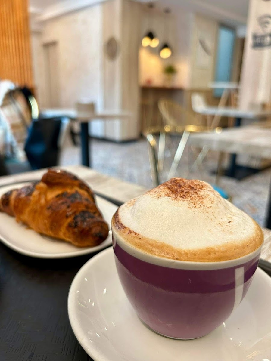 The café’s offerings focus on classic coffee drinks — their café con leche and latte are reliable picks — along with simple sandwiches like the bocata vegetal and fresh pastries, including decent croissants. Prices are reasonable, clearly aligned with the train station’s convenience factor, making it an attractive stop for budget-conscious visitors and locals alike.